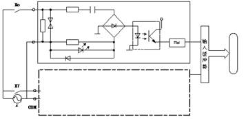 接到PLC輸入接口的輸入器件是:各種開關(guān)、按鈕、傳感器等。各種PLC的輸入電路大都相同,PLC輸入電路中有光耦合器隔離,并設(shè)有RC濾波器,用以消除輸入觸點的抖動和外部噪聲干擾。PLC輸入電路通常有三種類型:直流(12∽24)V輸入、交流(100∽120)V輸入與交流(200∽240)V輸入和交直流(12∽24)V輸入